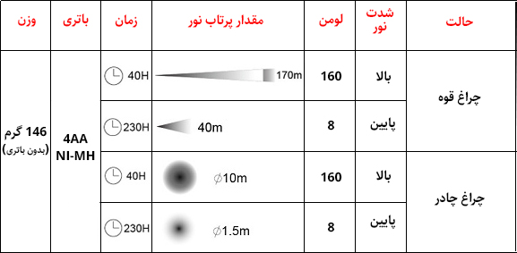 | منبع نور: | یک عدد CREE XPG3 S3 LED |